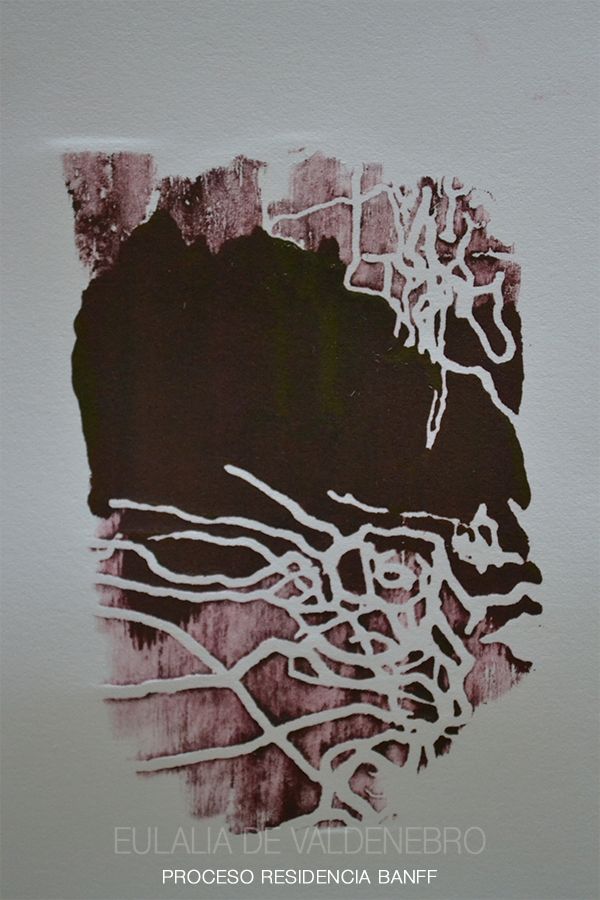 Con el objetivo de encontrar un reloj solar, busco un Gnomon con el que medir los días de trabajo en las montañas rocosas del **Banff Centre (Canadá)**. Una pequeña Asteraceae común deja su sombra en una roca y yo la calco con tinta y agua durante cuatro días de seguimiento.