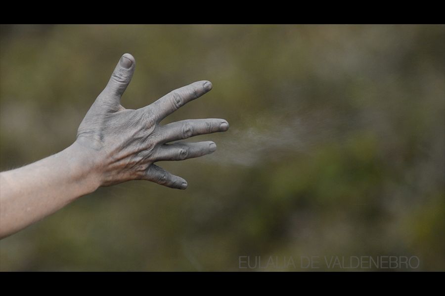 Mi cuerpo es el instrumento de dibujo, soy como la madera que sostiene el grafito de un lápiz, para que la niebla se dibuje sobre la tela que cuelga en la roca.